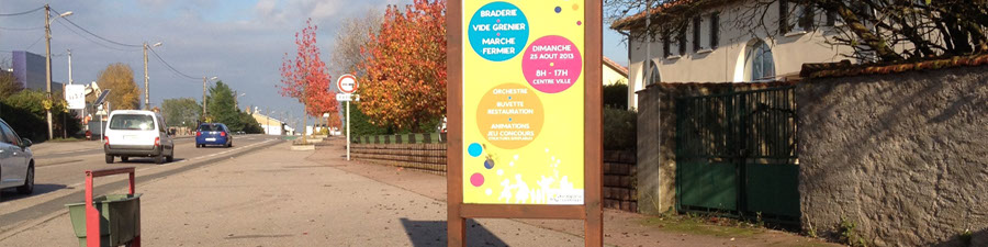 Logo - Mise en page - Panneaux - Plaquettes commerciales - Pochoirs - Roll-up - Scénographie - Signalisation extérieure - Signalisation intérieure - Stands parapluie - Textile publicitaire